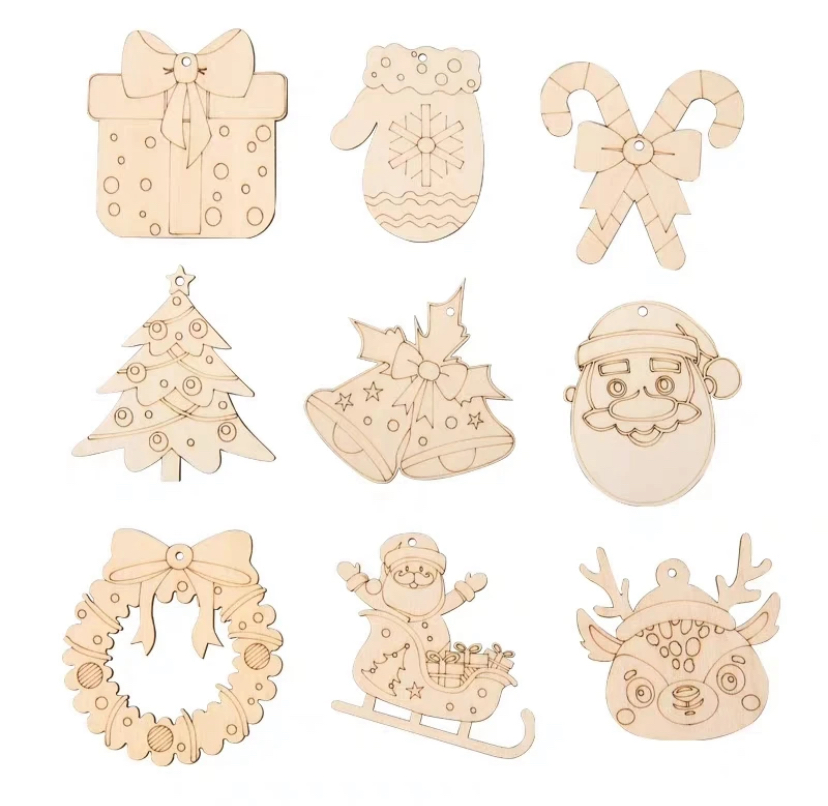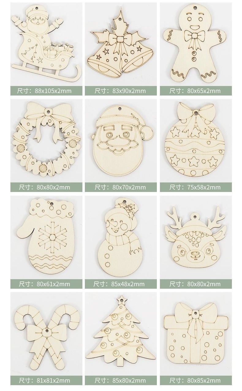 包括10件聖誕木掛飾+10條掛繩+10套6色迷你水筆